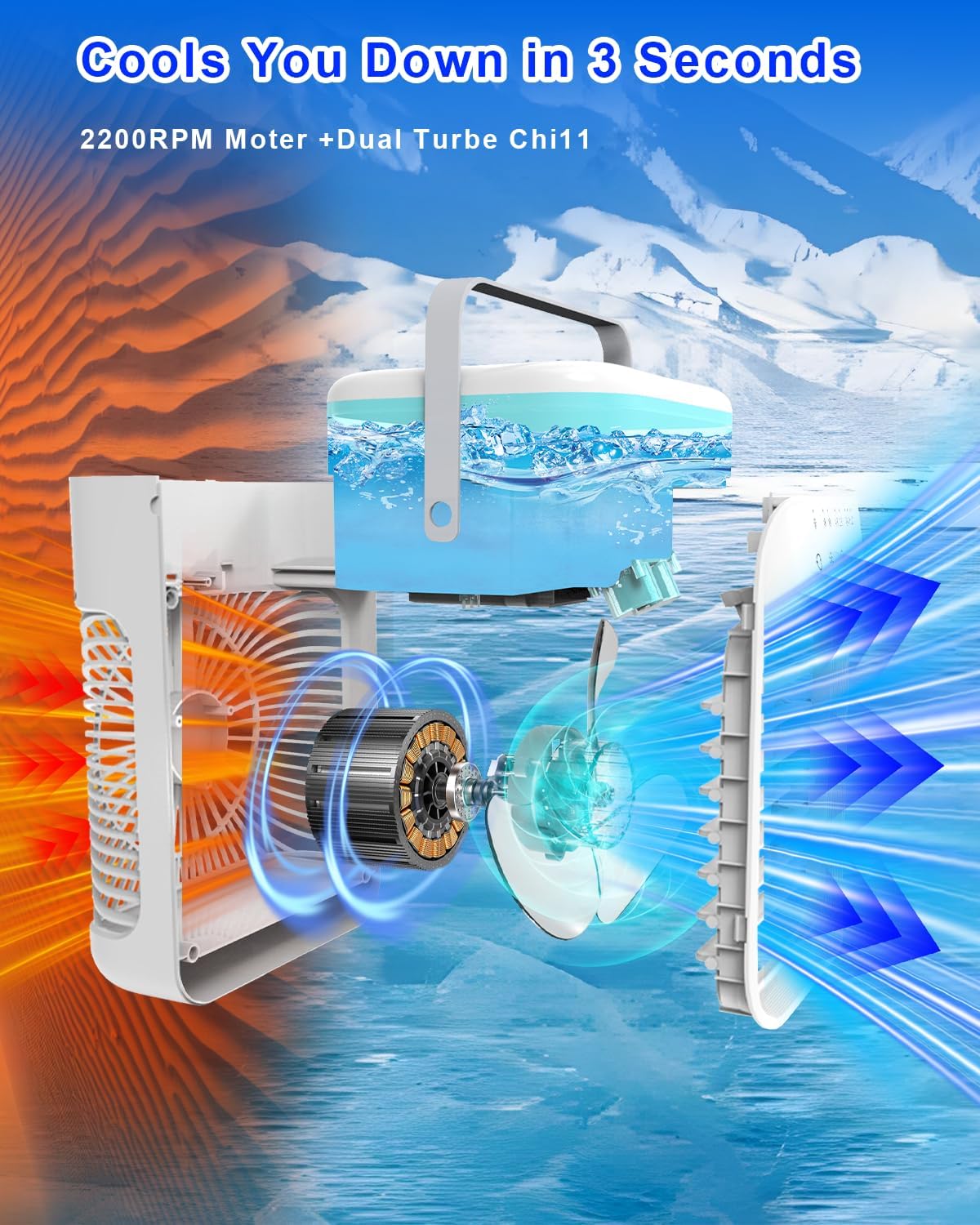 🔋 Quiet Operation & Convenient Timer – Designed to operate quietly, this portable air conditioner won’t disturb your sleep or work. It also comes with a 2H/4H timer, so you can set it to turn off after your desired cooling session. Plus, the 7-color LED night light creates a calming atmosphere, making it perfect for relaxation. Ideal for those who need a quiet air conditioner portable or cooling fans that blow cold air.