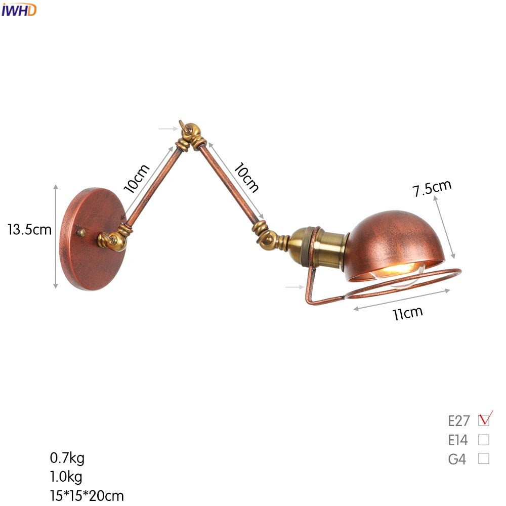 Item Type: Wall Lamps Is Dimmable: No Power Source: AC Technics: Plated Voltage: 90-260V Voltage: 110V Voltage: 220V Certification: UL Certification: CQC Certification: FCC Certification: EMC Certification: CCC Certification: VDE Certification: SAA Certification: ce Certification: GS Certification: EAC Certification: PSE Certification: LVD Lighting Area: 15-30square meters Base Type: e27 Application: Foyer Application: BATHROOM Application: Bed Room Application: Study Application: KİTCHEN Application: Dining Room Shade Type: IRON Features: 4W LED Edison Bulb Model Number: G-3109854 Light Source: LED Bulbs Body Color: white Body Color: black Body Color: Yellow Body Color: Brown Usage: HOLIDAY Installation Type: Wall Mounted Shade Direction: Up & Down Warranty: 3 year Style: vintage Brand Name: IWHD Number of light sources: 1 Is Bulbs Included: Yes Material: Metal Body Material: IRON Switch Type: Other Application: Living Room Style: Retro Vintage Loft Industrial Style Features: Edison LED Wall Sconces Feature1: Led Wall Lights Fixtures Feature2: Applique Murale Luminaire Lighting Feature3: Bedroom Beside Lamp Feature4: Vintage Wall Lamps Feature5: Retro Wall Light For Home Lighting Feature6: Lamparas De Pared Feature7: Bedroom Bathroom Mirror Light Feature8: Aplique Luz Pared